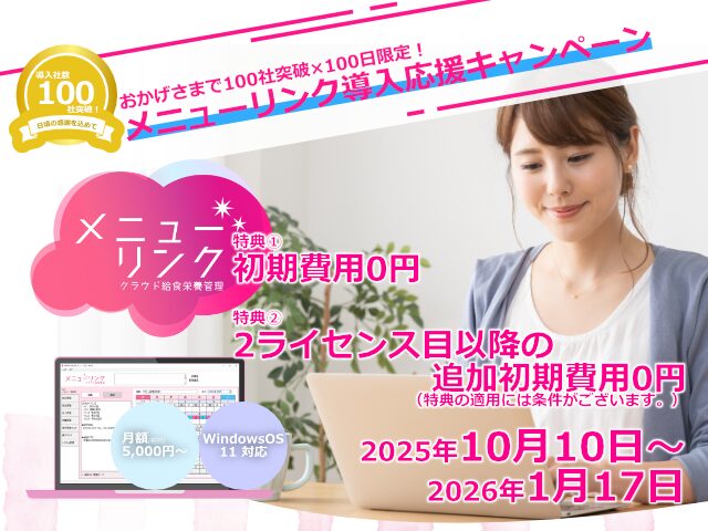 クラウド給食管理システム「メニューリンク」は、おかげさまで新規のご契約が100社を突破いたしました。