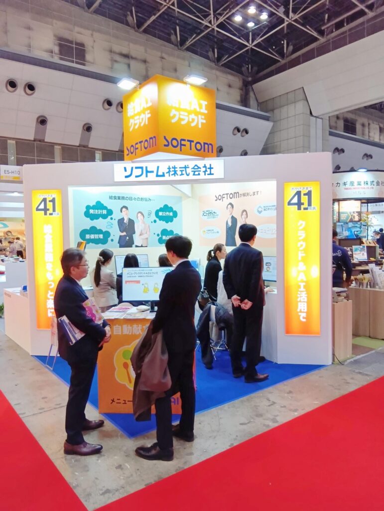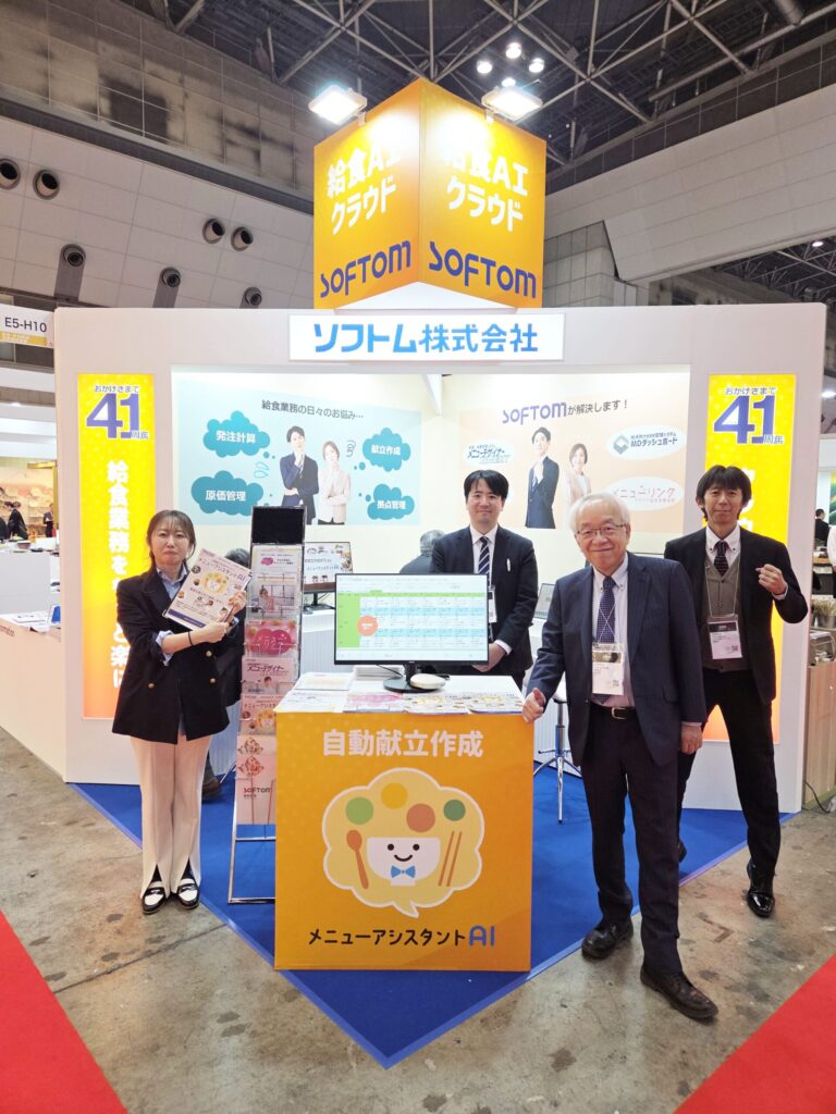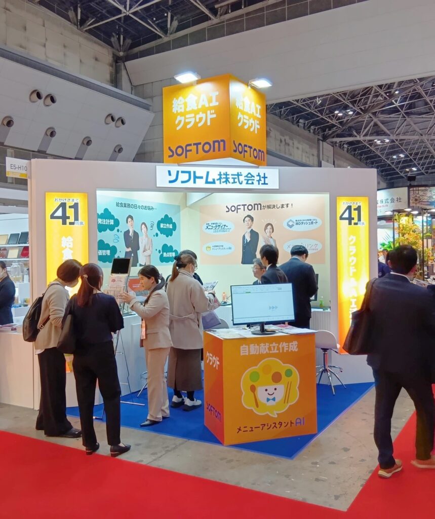 今回の展示では、給食・栄養管理業務の効率化に加え、AIを活用した業務支援機能についてもご紹介させていただきました。